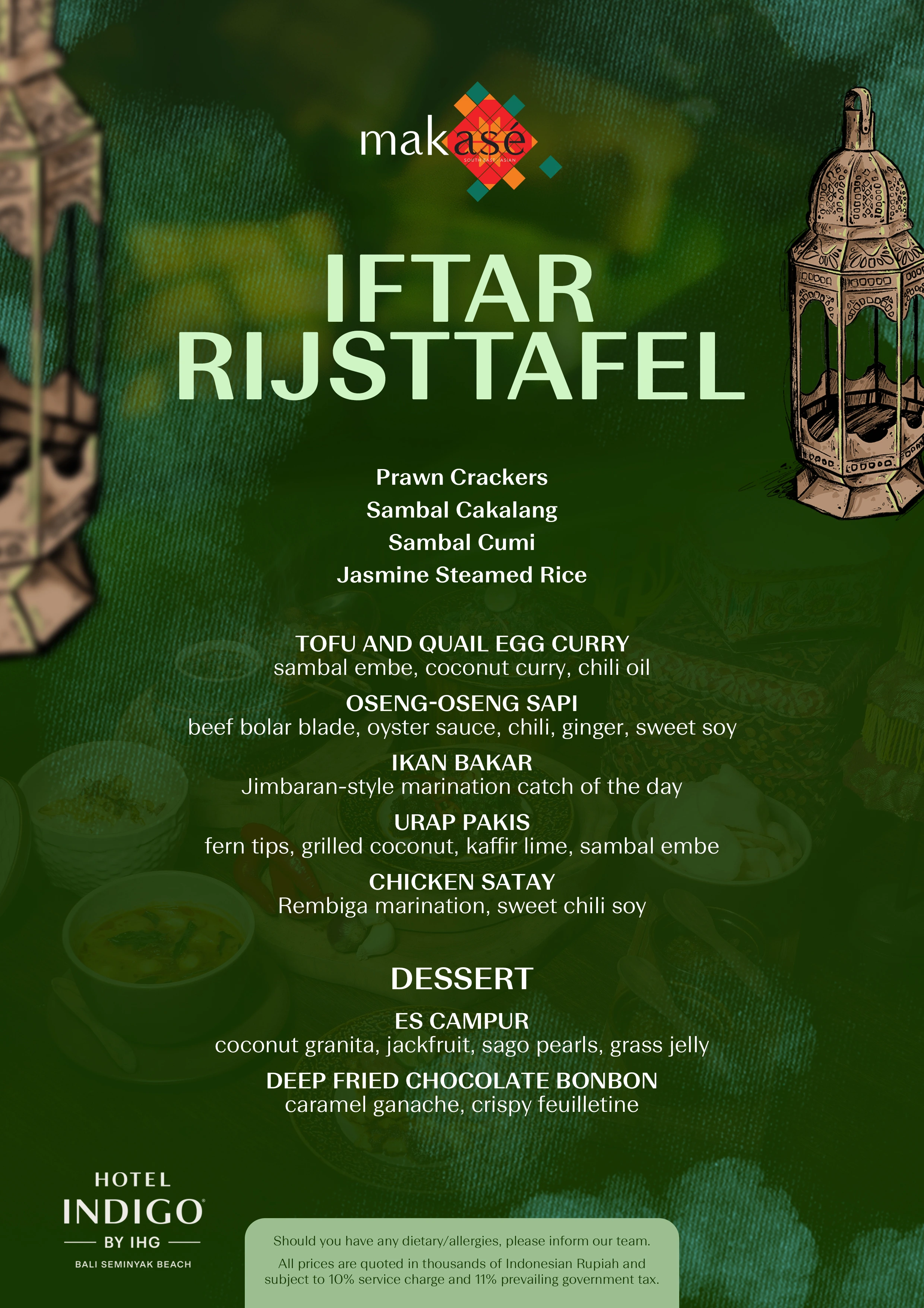 Начните свой пост с изысканного гастрономического путешествия по индонезийским вкусам, от идеально приготовленной на гриле рыбы икан бакар и куриного сатая до культового блюда эс кампур и многого другого.